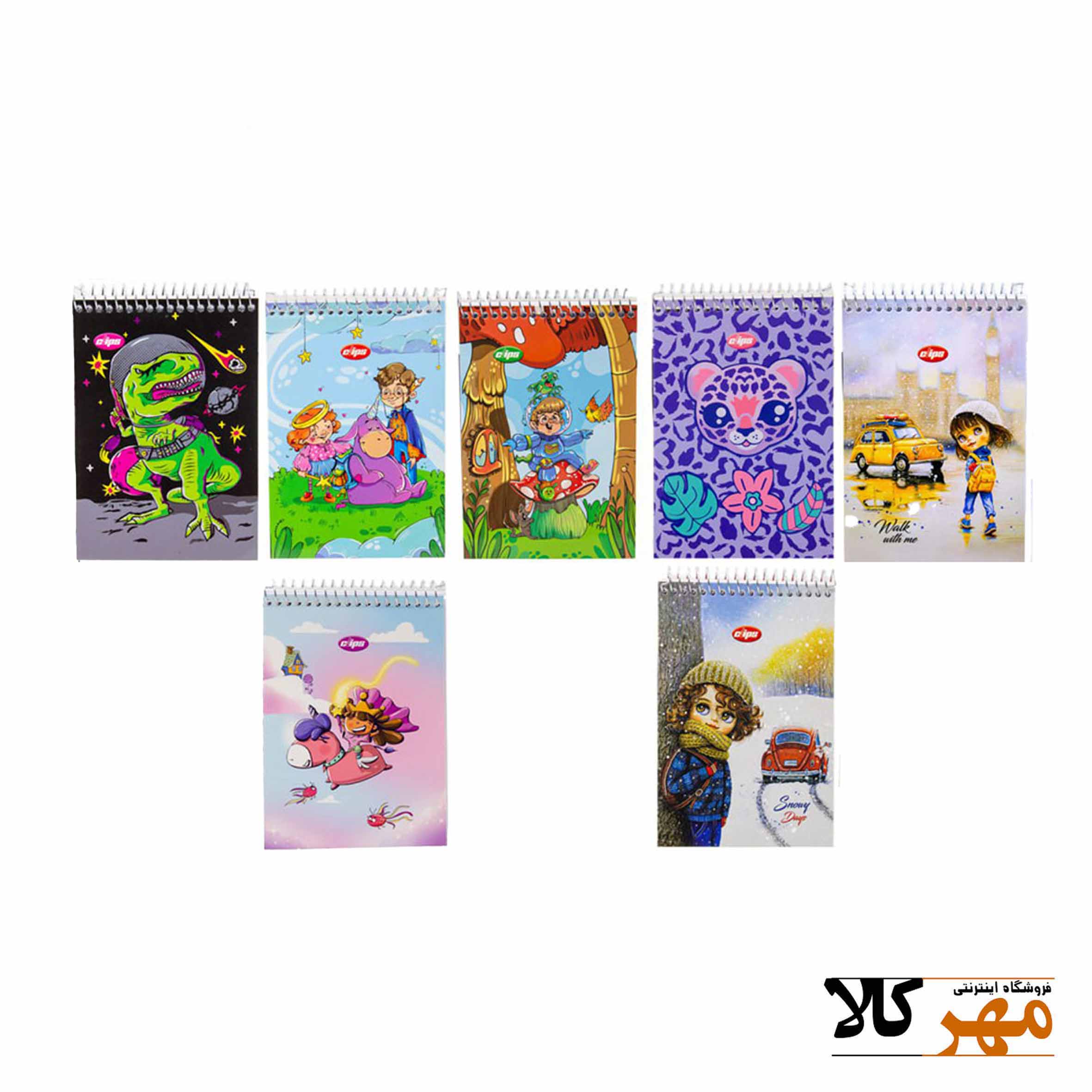 دفتر یادداشت جلد دار11*16 طرح دار clips
